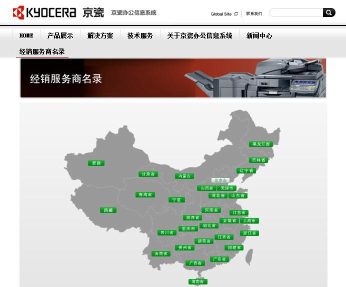 据京瓷集团九游官网网页版官网显示,该集团在中国总公司位于天津,其他各地分公司及办事处共有31处,分别位于北京、天津、上海、深圳、广州、大连、重庆、西安、长春、青岛、武汉、济南、无锡、东莞、香港。而在京瓷集团的子公司“ 京瓷办公信息系统(中国)有限公司”九游官网网页版官网中,查询某一产品的“授权经销服务商名录”显示,经销商遍布中国的多个省、市、自治区。由此可见,该公司业务所涵盖地区范围远超该pc端九游官网网页版官网的“京瓷在中国”的示意图。