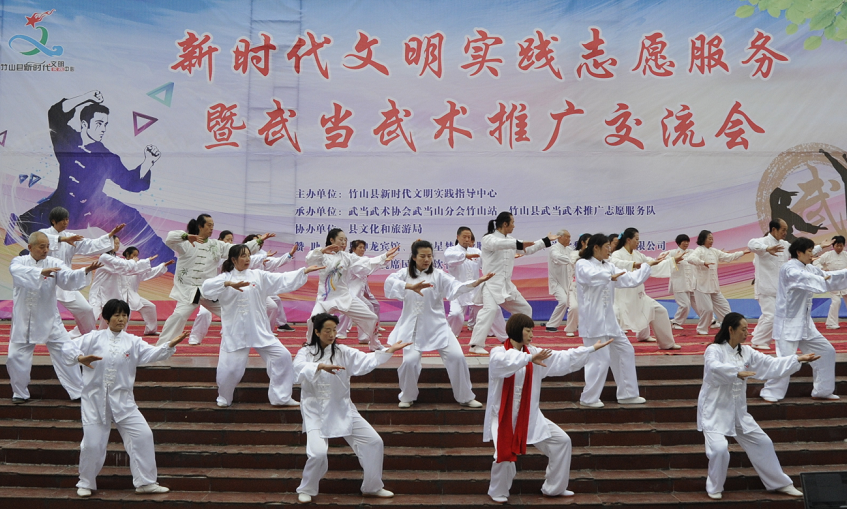 今日竹山网消息 12月31日,新时代文明实践志愿服务暨武当武术推广交流会在我县堵河文化广场举办。
