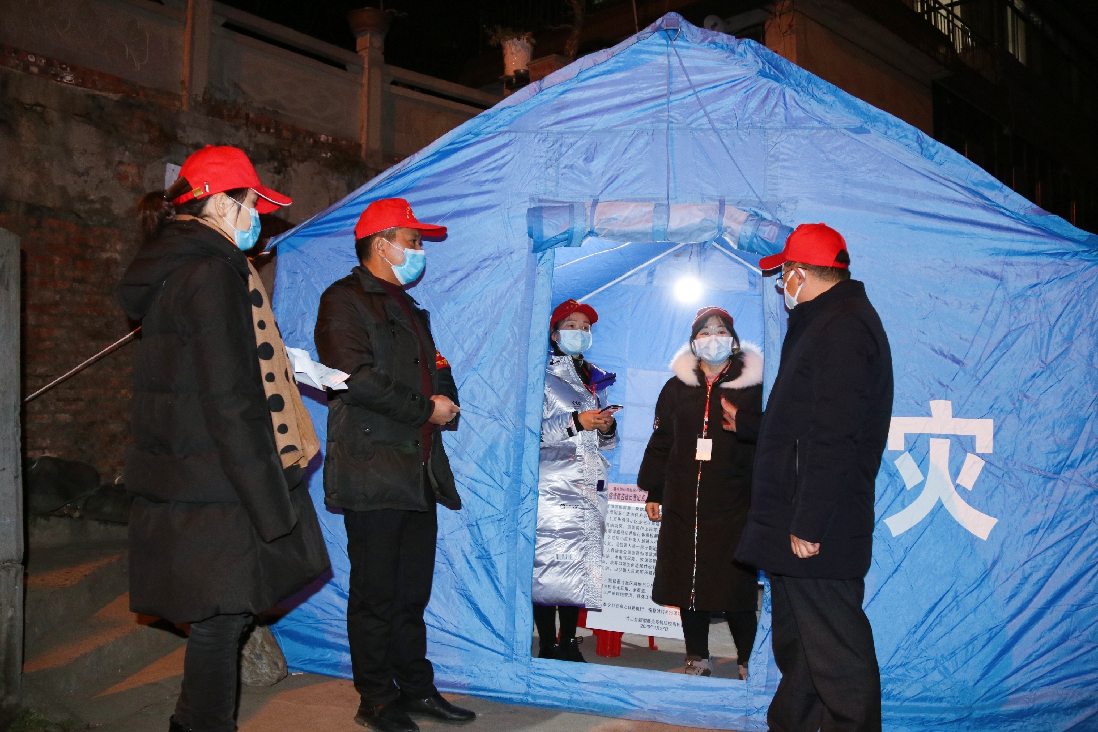 “晚上的温度比较低,大家注意把衣服裹紧,别感冒了。”“大家注意随时查看自己的口罩等防护用品使用状态,做好自身的防护工作。”217日晚上9点40分,笔者同督导组一同来到县市场监管局大门口,刚踏入门口,值守人员就要求我们进行体温检测。笔者稍站了一会,发现对进入内院的每个居民及工作人员,值守人员都会进行询问、登记,并逐一进行体温测试。其中还有在其它小区值守的工作人员陆陆续续的回到中。