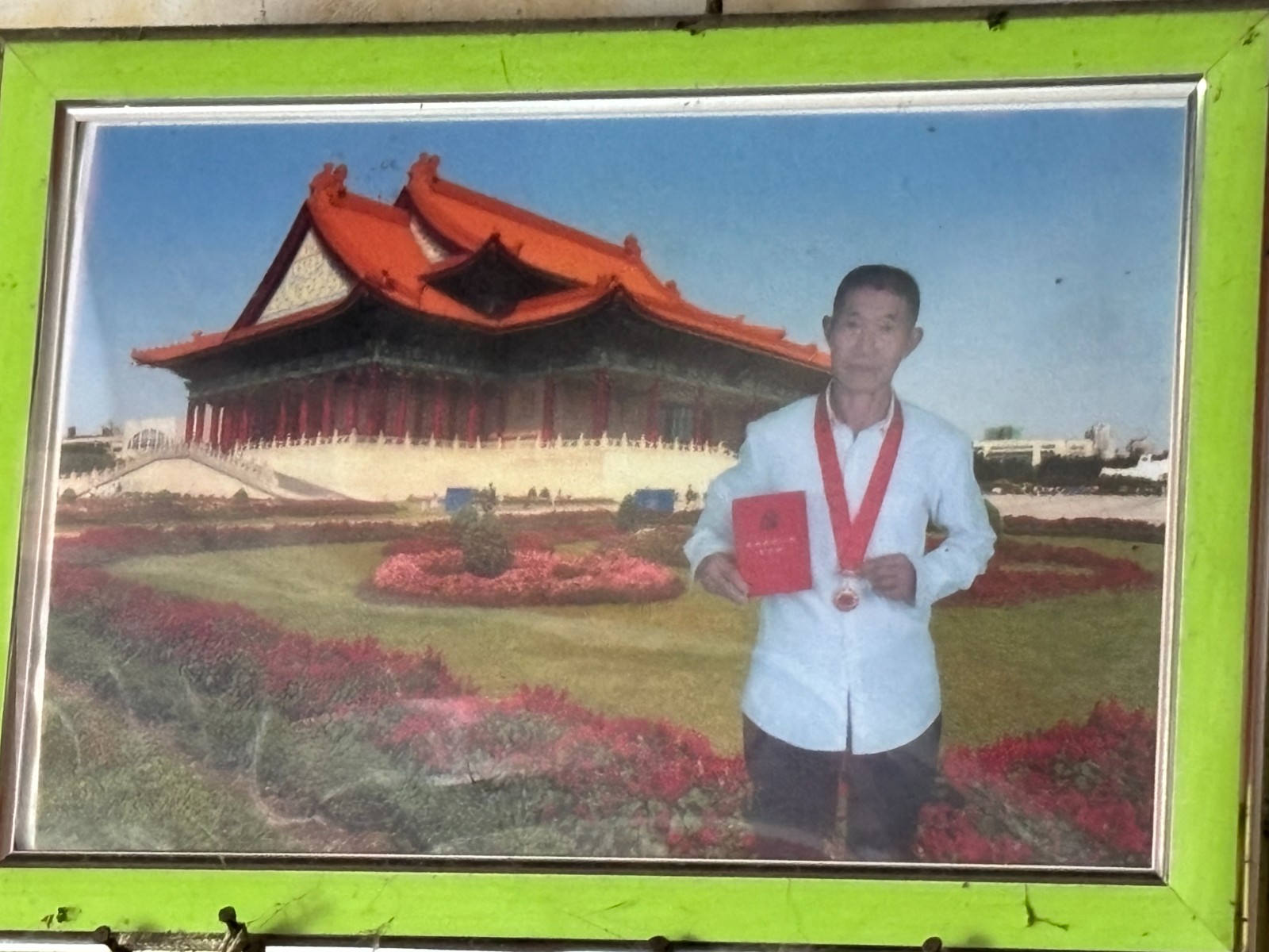 熬过五月连日的焦渴,山村终于在端午时节迎来三天吝啬的小雨,我也在雨后的第二天走进了陈道福的家。斑驳的土墙上,时光以照片的形式静静流淌,穿军装的年轻战士身姿挺拔,退伍后与家人的合影洋溢着烟火气,最醒目的位置,“光荣在党50年”留影相片在屋里闪耀。泛黄的墙皮与奖章形成鲜明对比,仿佛在诉说着半个世纪的风雨兼程。