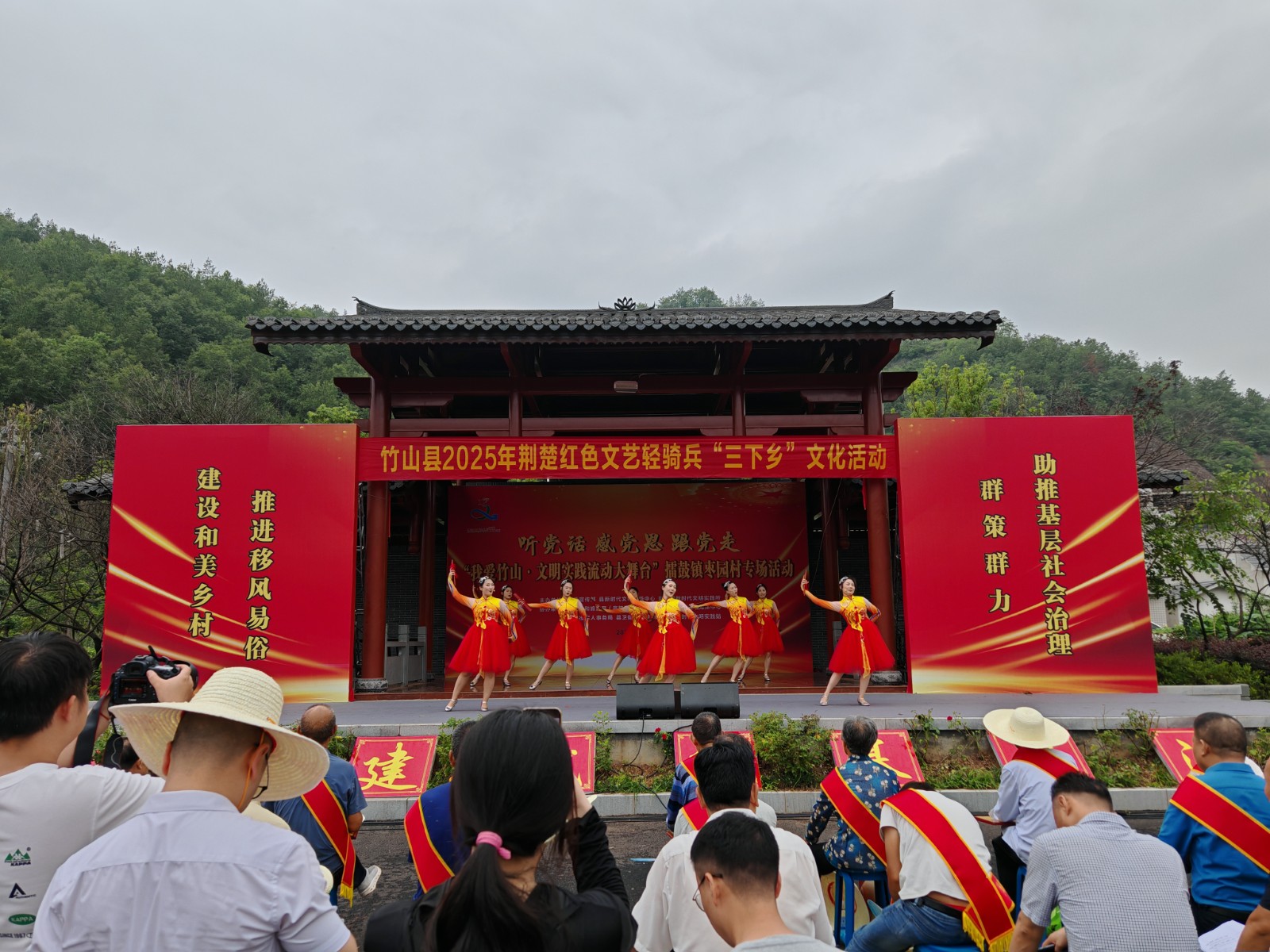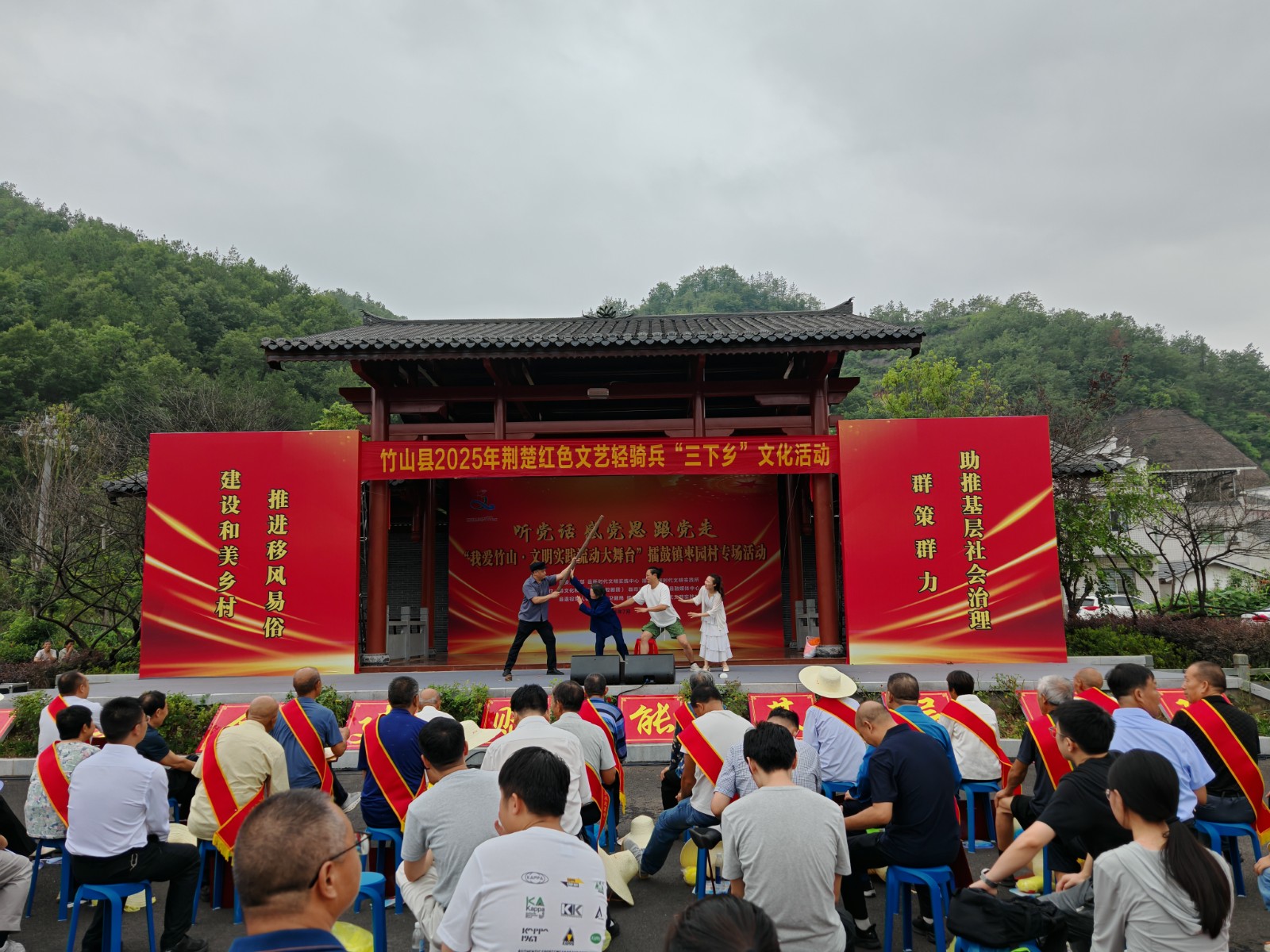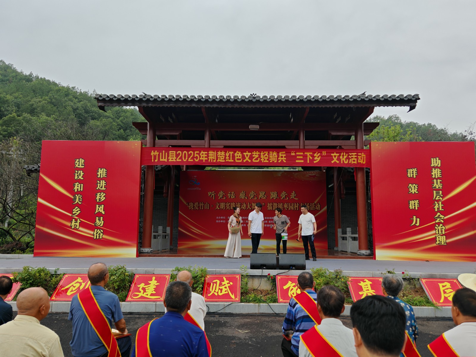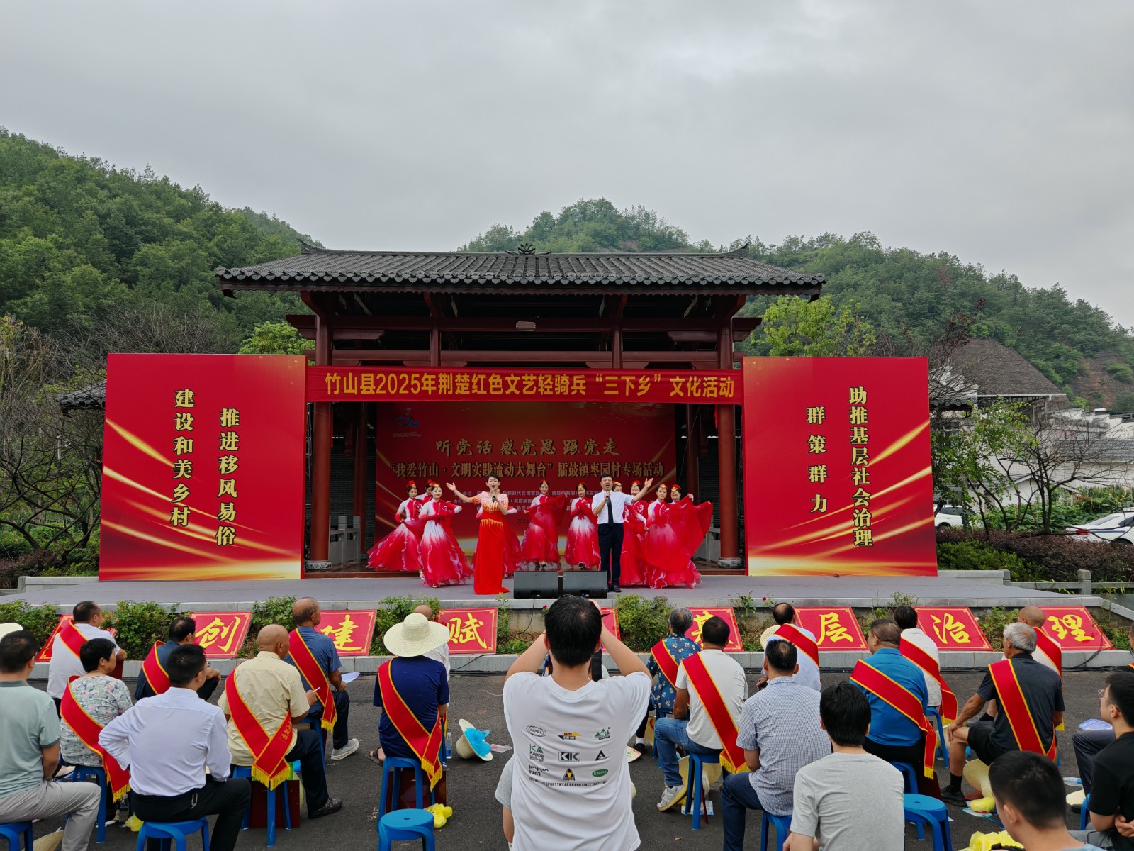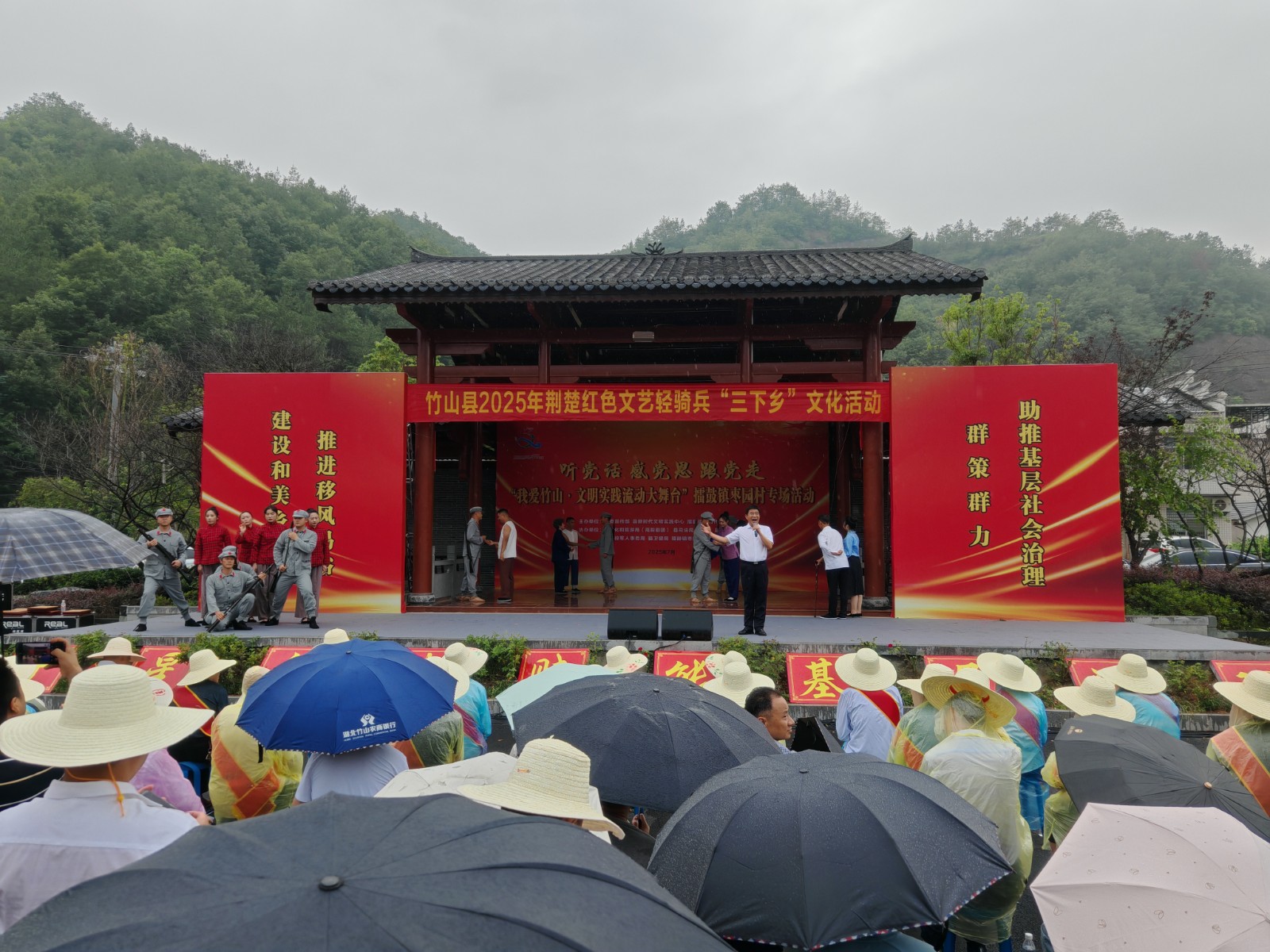 今日竹山网  7月17日,县文旅局组织开展荆楚红色文艺轻骑兵“三下乡”文化活动。此次活动以“听党话、感党恩、跟党走——‘我爱竹山·文明实践流动大舞台‘”为主题,通过文艺演出、政策宣讲、志愿服务等形式,将文化资源精准送到基层,为群众送去一场接地气、有活力、有温度的“文化盛宴”,更为基层社会治理注入文化动能。