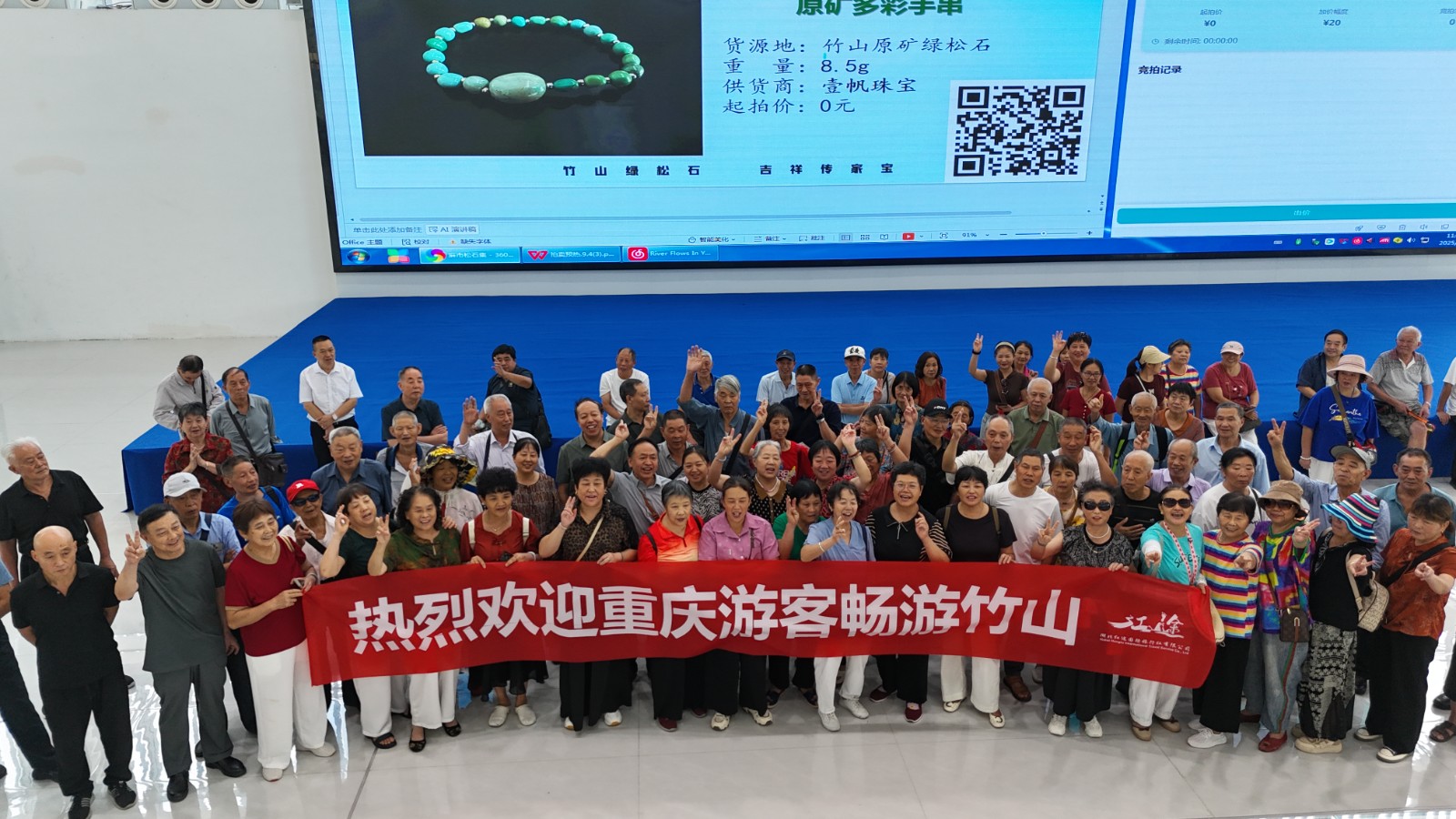 今日竹山网消息 9月4日,麻家渡绿松石交易市场人头攒动、热闹非凡,100余名来自重庆的游客在此开启了一场“寻绿探幽”之旅。