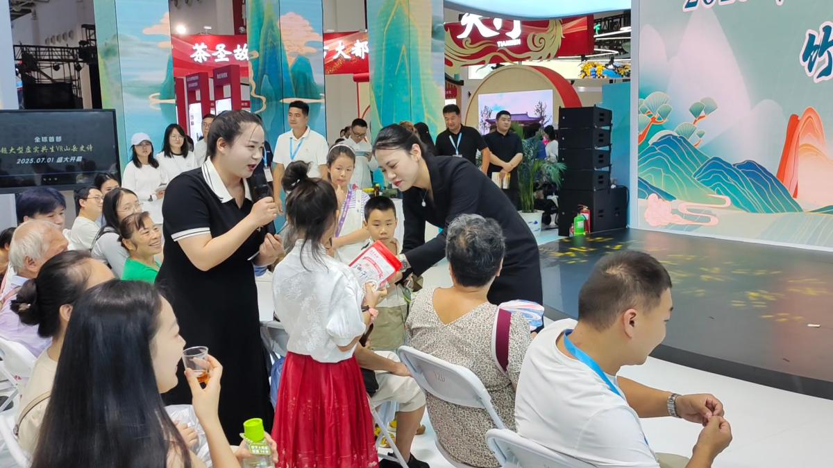 值得一提的是,十堰展区还专门设置了农特产品和绿松石展销区,集中展示了竹山优质的绿松石工艺品、特色农产品和深加工食品。来自竹山的有机茶叶、地道菌菇、天然蜂蜜等农特产品,以及设计精美、工艺精湛的绿松石首饰和摆件,吸引了大量参观者驻足咨询和购买,展销现场人气火爆,深受欢迎,充分展现了竹山“文旅 产业”融合发展的丰硕成果。