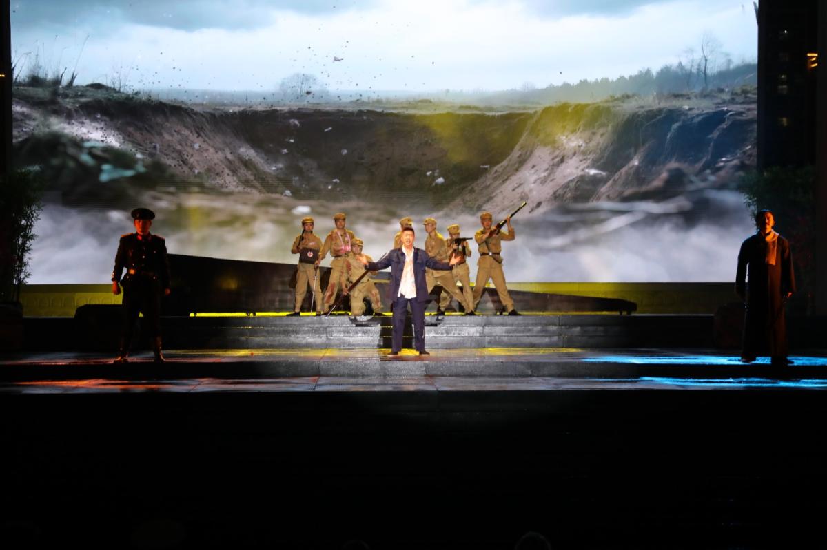 当晚,不少观众提前到场,或携亲友重温剧情,或首次等候开场。演出依旧以“序 四幕 尾声”的完整结构展开,序《女娲补天》讲述女娲炼石救世的远古传奇;第一幕“上庸远古风”以《巫舞祈福》《庸王点兵》《竹酒壮行》展现了上庸古国气度与家国情怀;第二幕“梦寻桃花源”展现了大美竹山的生态之美;第三幕“茂林传薪火”彰显了竹山的劳动传承与人间烟火;第四幕“热血铸丰碑”歌颂了竹山英烈舍生取义的壮举;尾声《遇见竹山》则串联起竹山的千年历史、自然美景与未来图景。作为秋晚展示现场,竹山县突出“桃源深处、山水欢歌”主题,在第三幕中把堵河剪纸、绿松石雕刻、合碗席及婚俗融入节目,让整场晚会增强祥和幸福的味道。《遇见竹山》主题曲和村歌《又见桃花源》响起,将四幕融为一体,悠扬入胜,令人向往。