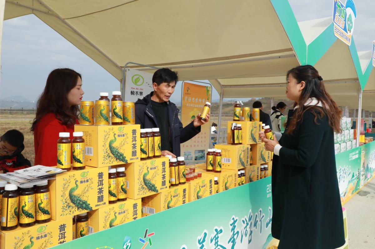 作为赛事指定饮品,楠木寨(湖北)农业发展有限公司的“普洱茶醋”成为展区“爆款”。市民李女士说 : 我今天特地买了一箱普洱茶,非常好喝,还有其他的很多农副产品也非常好,今天我先买一箱尝尝。