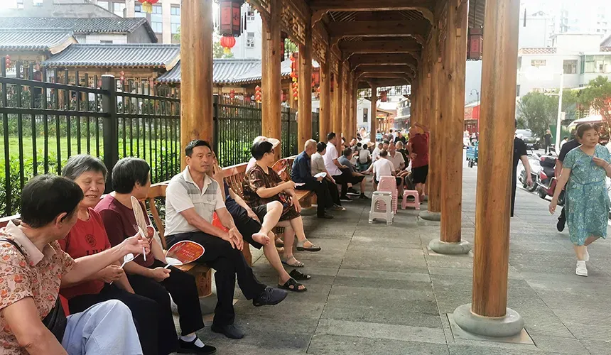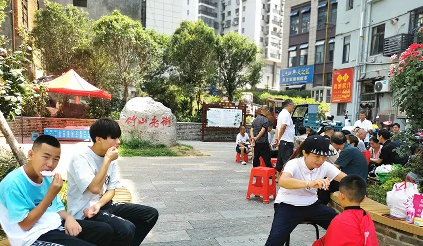 再看竹山老街,摊贩们占道经营退出视线,地面上的垃圾和污水不见踪影,取而代之的是整洁亮丽的柏油路和石板街,绿意盎然的口袋公园,散步休闲的仿古长廊,当你双手提着刚买的生活用品,逛街走累的时候,随时都可以找一个长凳坐下来休息一会儿,细品和欣赏眼前的小美好。
