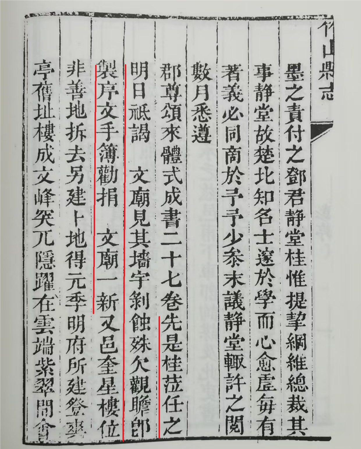 《竹山县志》虽无节后返岗上班的直接记录,但处处可见官员勤政为民、朝夕不怠的履职状态。乾隆版《竹山县志》序中记载,“先是,桂莅任之明日,祗谒文庙,见其墙宇剥蚀,殊欠观瞻,郎制序文,手簿劝捐,文庙一新。” 意思是:在这之前,桂(人名,即这位官员)到任第二天,就恭敬地前往文庙拜谒。看到文庙墙壁和屋宇已经剥落侵蚀,很不美观,于是亲自撰写序文,拿着簿册去劝募捐款,最终让文庙焕然一新。这种 “不用扬鞭自奋蹄”的自觉担当,既是竹山自古传承的勤政文脉,也是古代为官者的典范。
