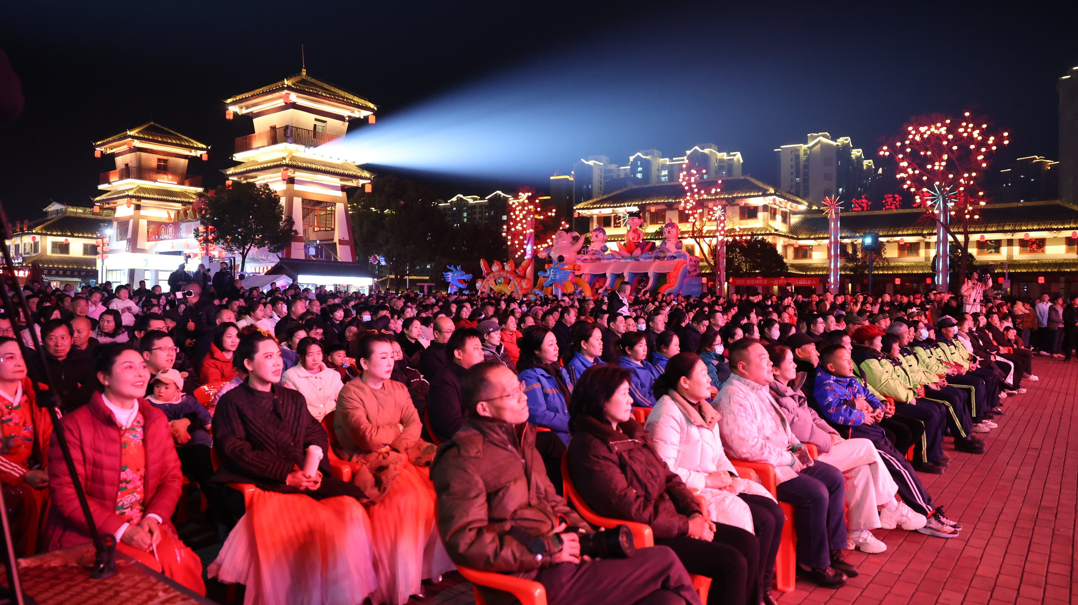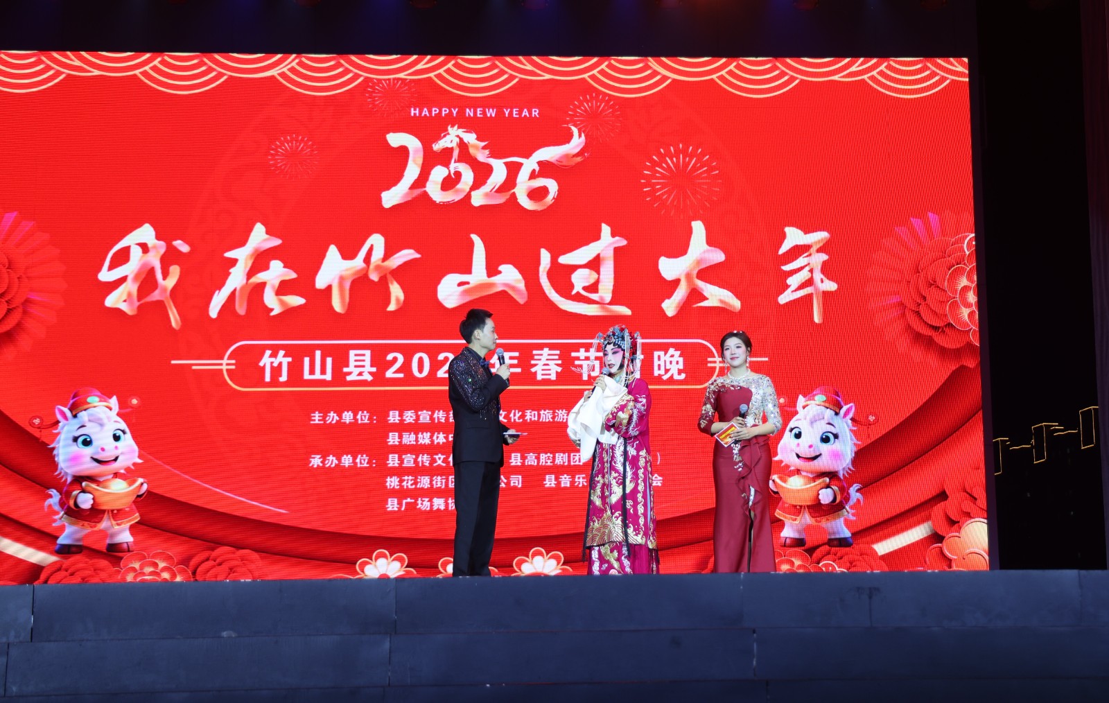 今日竹山网消息 灯火映堵河,欢歌庆新春。2月12日晚7点,竹山县2026年春节村晚在女娲广场热闹开演,灯光璀璨、暖意融融,各界群众欢聚一堂,共赏乡土盛宴、共迎马年新春,浓浓的年味里满是团圆喜乐,处处洋溢着全民同乐的新春氛围。