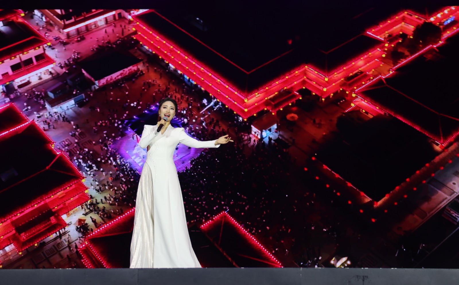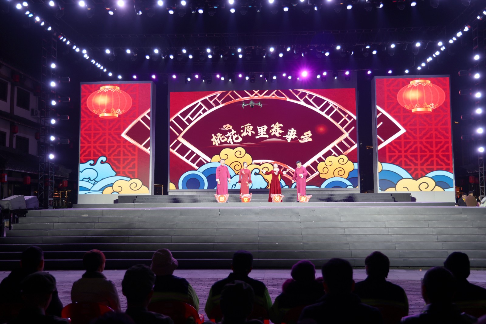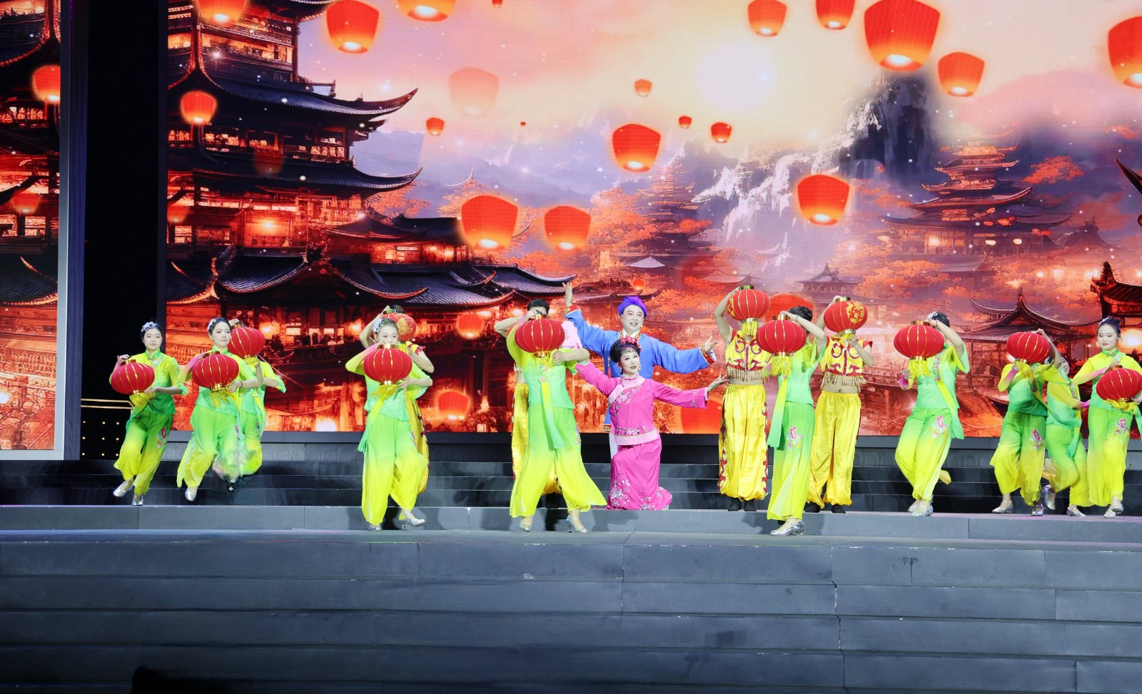 本土文化贯穿始终,竹山高腔剧团与郑雪莲同台演绎戏曲联唱,集黄梅戏《夫妻观灯》、豫剧《抬花轿》、京剧《锁麟囊》、竹山高腔《笑语迎八方》等,融合国粹与非遗,经典唱段《苏三起解》赢得满堂喝彩。竹山网红带来《网红带货争霸赛》,接地气又有新意;社区大妈的广场舞、小朋友的歌曲翻唱、大学生的青春演绎,尽显全民参与热情。群口相声《桃花源里赛事多》幽默展现竹山文体活动的蓬勃活力。