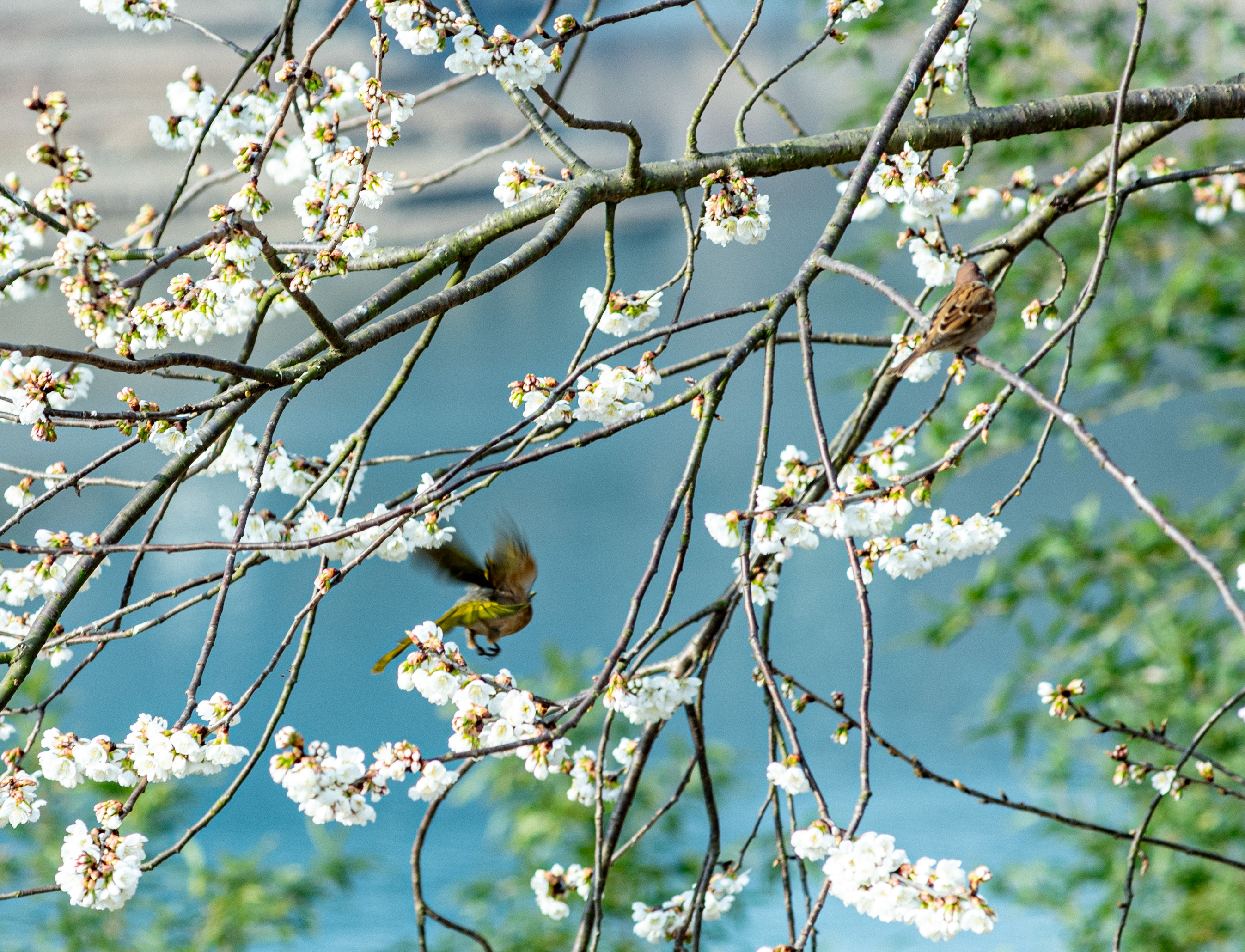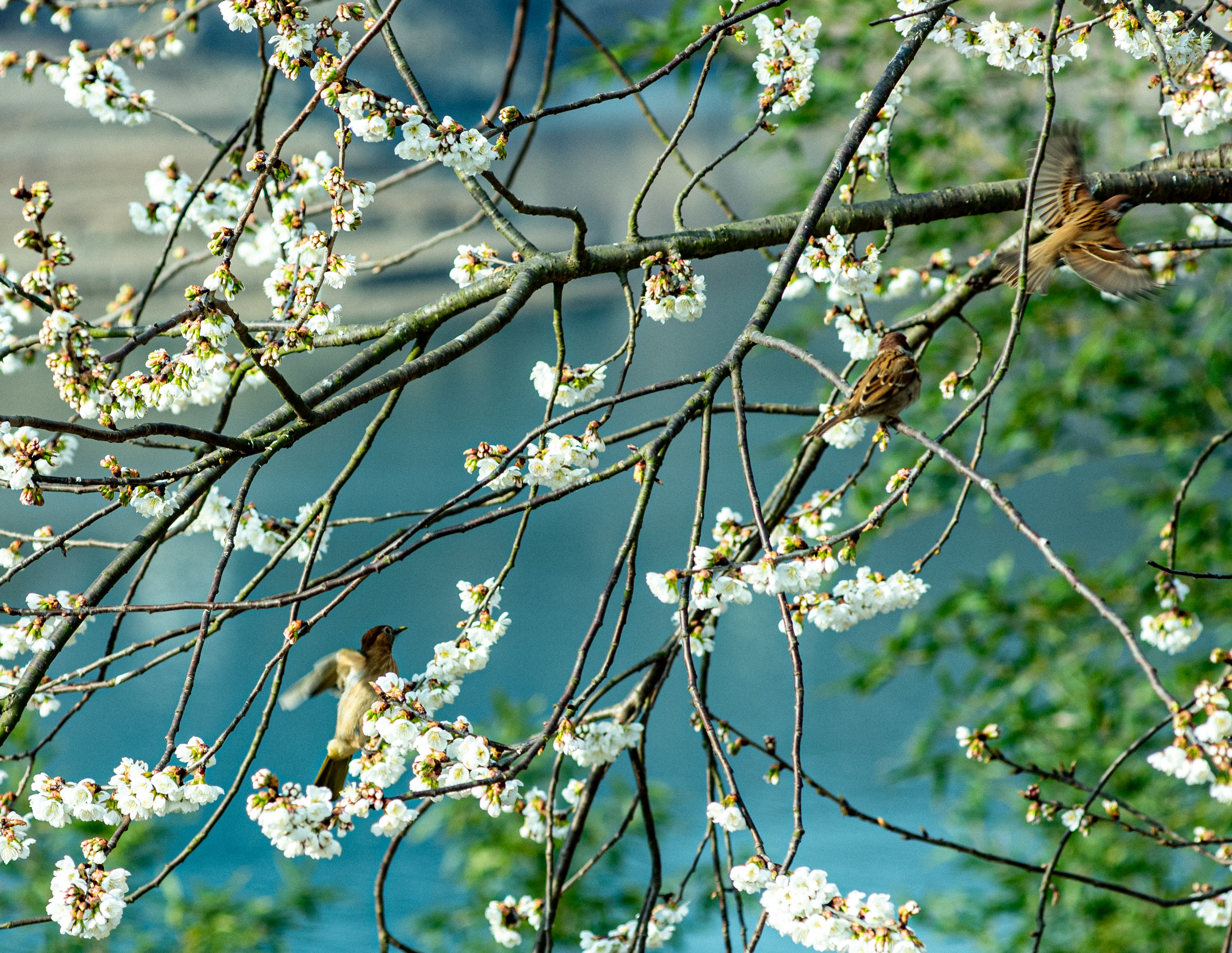 今日竹山网消息 阳春三月,竹山县上庸镇圣水湖国家湿地公园春意盎然,一派生机勃发的生态美景。樱花、杏花、广玉兰、红梅、油菜花竞相绽放,色彩斑斓、芬芳四溢,在碧水蓝天的映衬下格外妖娆迷人。花丛间,绿翅短脚鸭、麻雀等鸟类翩跹起舞、嬉戏觅食,灵动的身影与繁花碧水相映成趣,勾勒出一幅幅人与自然和谐共生的春日生态画卷。(张睿)