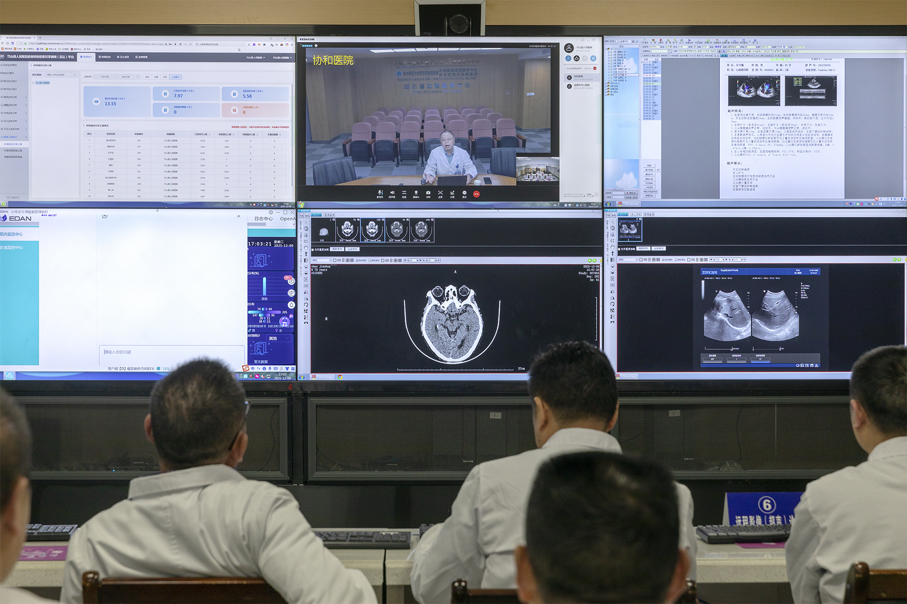 与协和医院的合作尤为紧密。去年5月,双方签署技术协作协议,启动“双百工程”后,协和医院已两次派出专家团队深入竹山,开展坐诊、查房和手术指导。神经内科、消化科、儿科、心脏大血管外科等多个学科的患者,因此在家门口享受到了顶级医疗服务。同时,通过远程会诊视频系统,共同讨论疑难危重症病例已经步入了常态化。