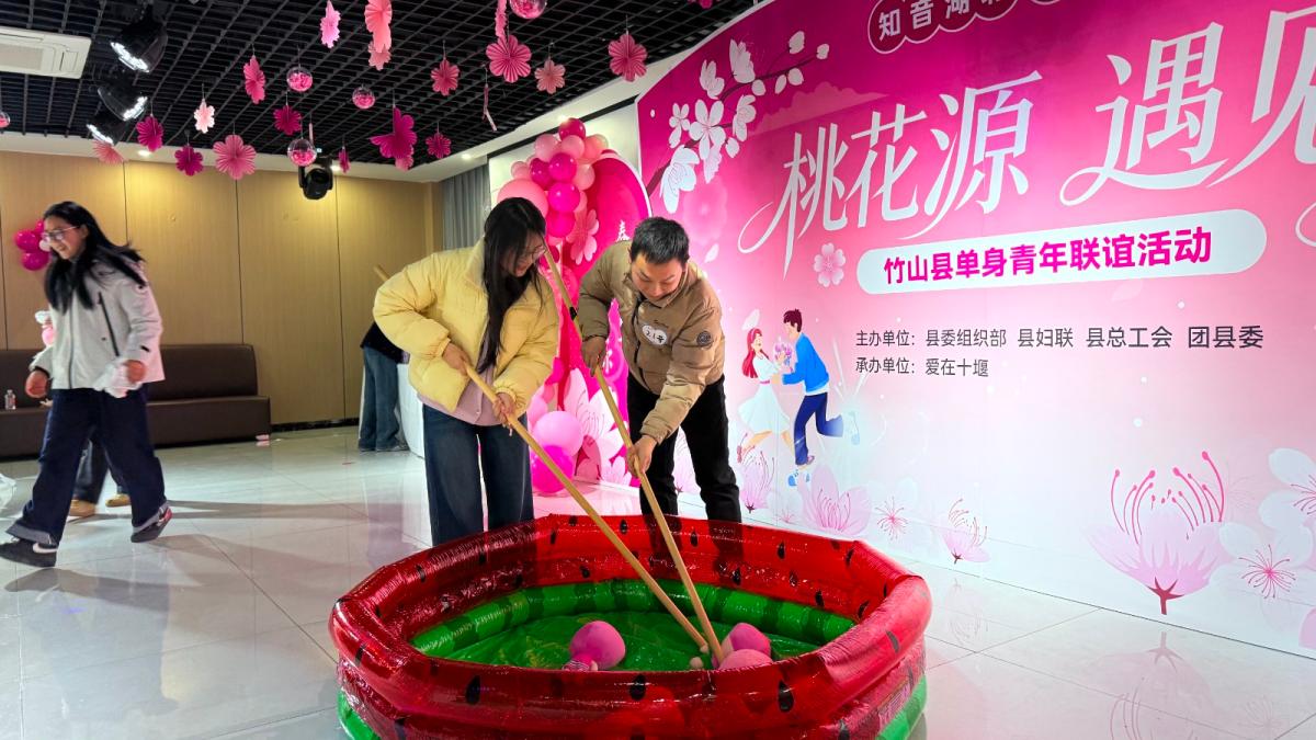 今日竹山网消息 3月7日,在“三八”国际妇女节之际,“桃花源 遇见缘”单身青年联谊活动在县工人文化宫成功举办,来自全县企事业单位的百名单身青年齐聚桃花源街区,共赴一场春日浪漫之约。