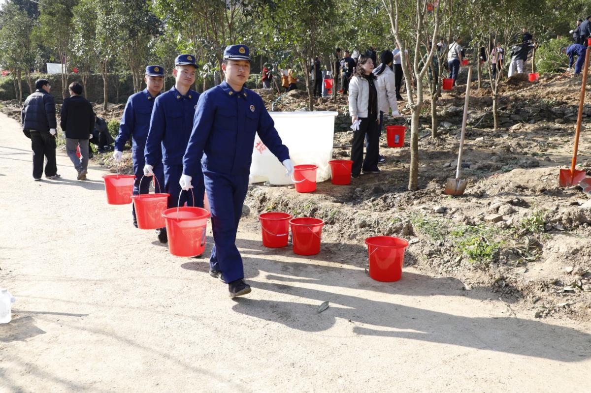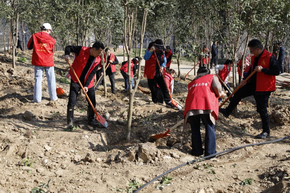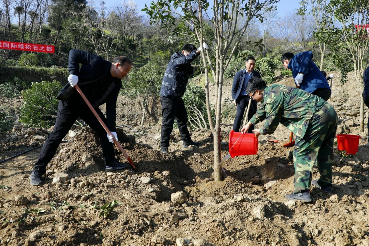 植树现场,暖意融融、干劲十足,到处是忙碌的身影。大家分工协作,挥锹铲土、扶直苗木、培土压实、提水浇灌,每一个环节都认真细致、有条不紊。经过近两个小时的忙碌,一株株新苗迎风挺立,为春日的竹山增添勃勃生机。“本次义务植树栽植的树种主要有桂花、红梅、玉兰等,共有600余人参加活动,累计栽植树木1800余株。”县林业局总工程师周玉芳说。