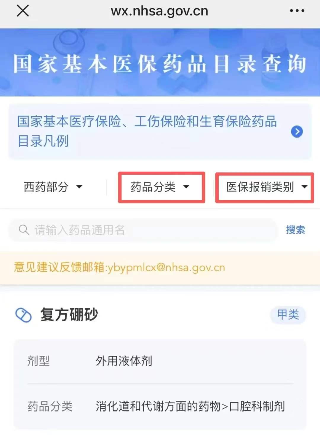 您也可以根据自己的需求,按“药品分类”或“医保报销类别”进行筛选和查找。