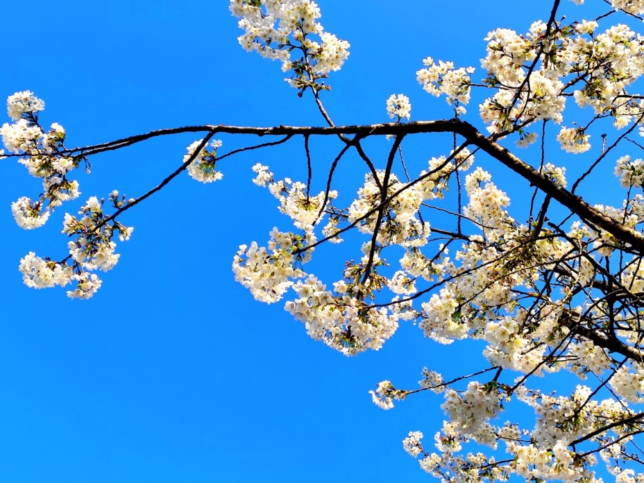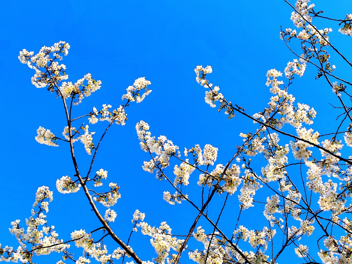 樱花洁白映蓝天
