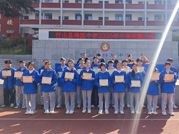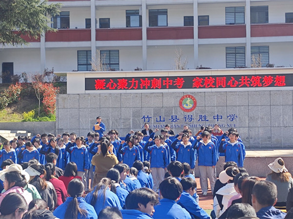 今日竹山网消息  4月1日上午,得胜中学在操场上隆重举行了九年级中考表彰和誓师冲刺大会。学校领导、九年级全体师生及大部分学生家长共同参加了此次盛会。