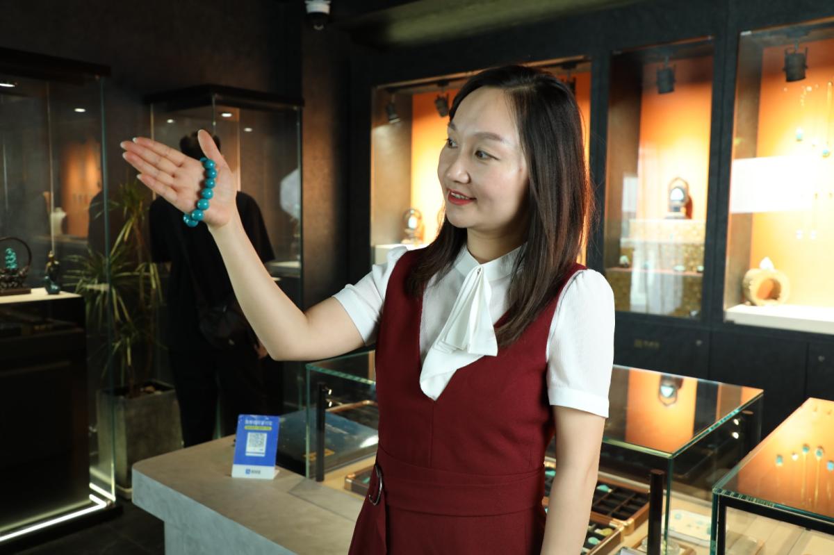 形似松球,色近松绿,故得名绿松石。竹山绿松石以质如金石、色丽多彩闻名,随着品牌影响力扩大,越来越多年轻人与珠宝爱好者投身其中。