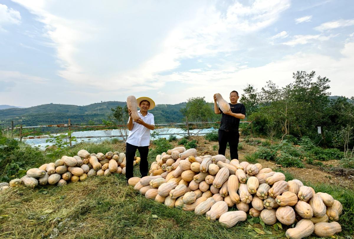 8月5日,溢水镇何家湾村油茶基地的道路两旁堆满了金灿灿的南瓜,村民们正忙着分拣、搬运、装车,一派丰收的繁忙景象。今年以来,该村充分利用油茶生长的“空窗期”,在油茶林中套种密本南瓜500余亩,预计每亩产值达到2000元左右,拓宽了农民增收渠道,实现了生态效益和经济效益的双赢。 (程 平 摄)