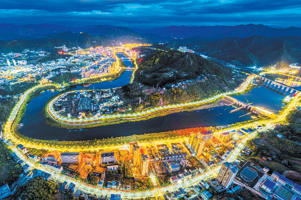 9月15日,在潘口乡、城关镇沿线,夜幕下的242和346国道如两条舞动的金色丝带,沿堵河蜿蜒伸展,美轮美奂。近年来,我县对这两条国道实施道路拓宽、亮化及景观提升工程,通行效率显著提升,日均车流量达7200余辆次,较五年前增长55%,竹山西部9个乡镇顺利融入县城“一小时生活圈”,极大方便了群众出行和物资流动。同时,我县在沿线配套建设文化广场、便民超市等设施,22.6万群众享受到更便捷、更优质的服务。 (章 磊 摄)
