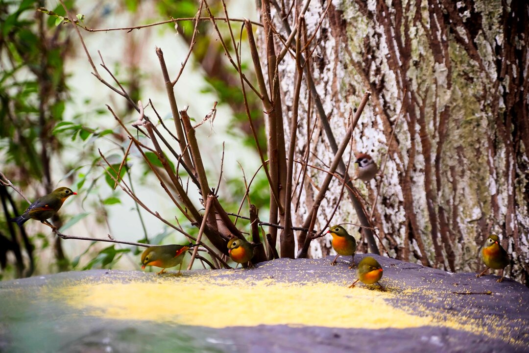 小雪遇“相思”,林静鸟欢鸣。11月16日,堵河青年林层林尽染,县内摄影爱好者在此捕捉到动人一幕:十余只国家二级保护动物红嘴相思鸟,正聚集在河边礁石上,啄食市民精心准备的苞谷面,红嘴翠羽在暖阳下熠熠生辉,灵动的身影构成了一幅人与自然和谐共生的绝美图景。(程平 摄)