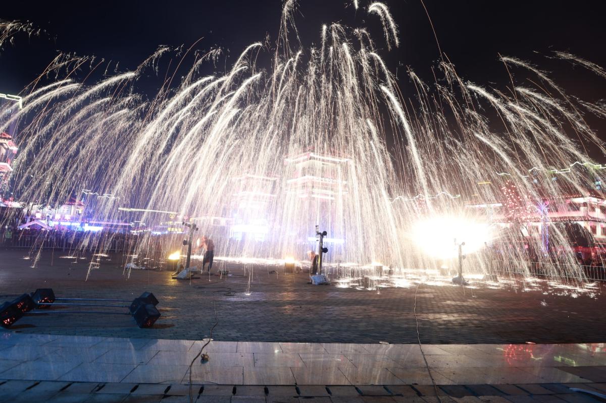 桃花源街区成为节日“网红打卡地”,白天逛市集、看民俗,晚上灯火璀璨,夜游、篝火晚会人气高涨,美食飘香与欢歌笑语交织,点燃城市烟火气,无人机3d光影秀璀璨点亮堵河,趣味互动接连上演,市民游客沉浸式感受新春乐趣。还有圣水湖游园会、非遗打铁花、滚龙舞狮等活动激发文旅市场活力,城乡处处洋溢着热闹喜庆的节日氛围。